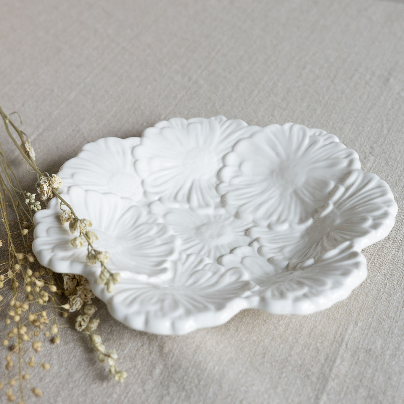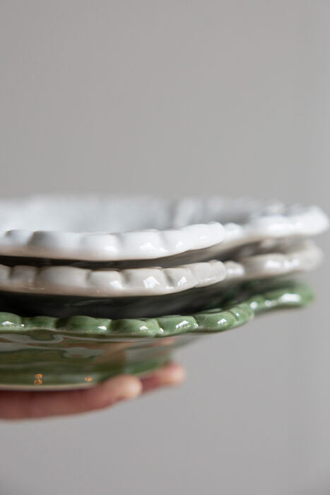Äng är ett handgjort keramikfat i form av en blomma. Detta vackra fat är både dekorativt och funktionellt, och passar perfekt för servering i alla olika former men också som en dekorativ detalj i ditt hem.