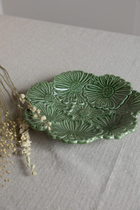 Äng är ett handgjort keramikfat i form av en blomma. Detta vackra fat är både dekorativt och funktionellt, och passar perfekt för servering i alla olika former men också som en dekorativ detalj i ditt hem.