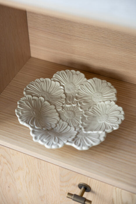 Äng är ett handgjort keramikfat i form av en blomma. Detta vackra fat är både dekorativt och funktionellt, och passar perfekt för servering i alla olika former men också som en dekorativ detalj i ditt hem.