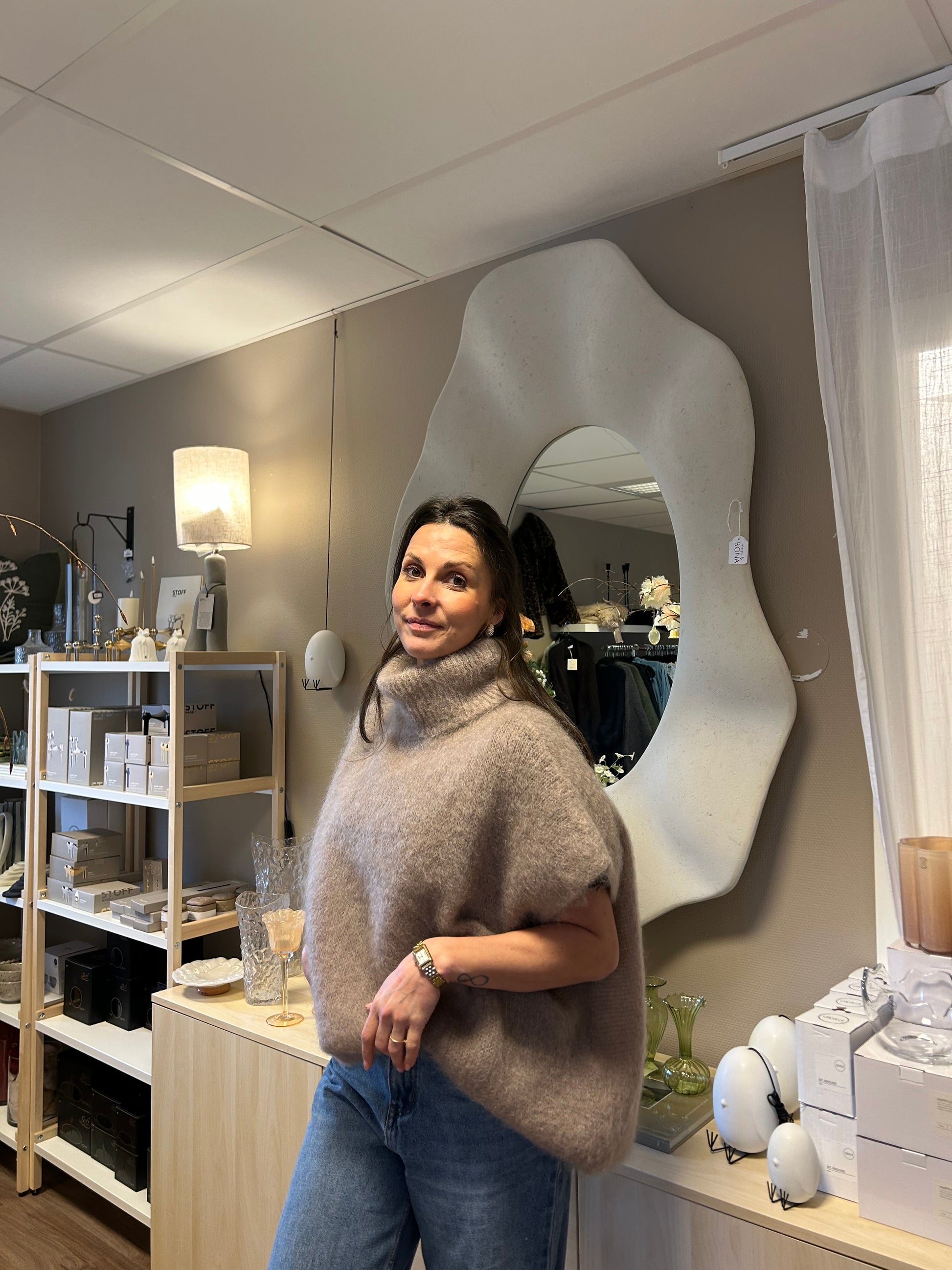 Ärmlös Mohair 80% Polo, Taupe