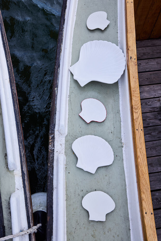 Tallrik Shell är ett resultat av när havets djup gör avtryck i vårt skapande. Små snäckfat som passar perfekt för förrätten likaväl som att ha på toaletten för tvål, eller att lägga smyckena på när du tar av dem för natten.