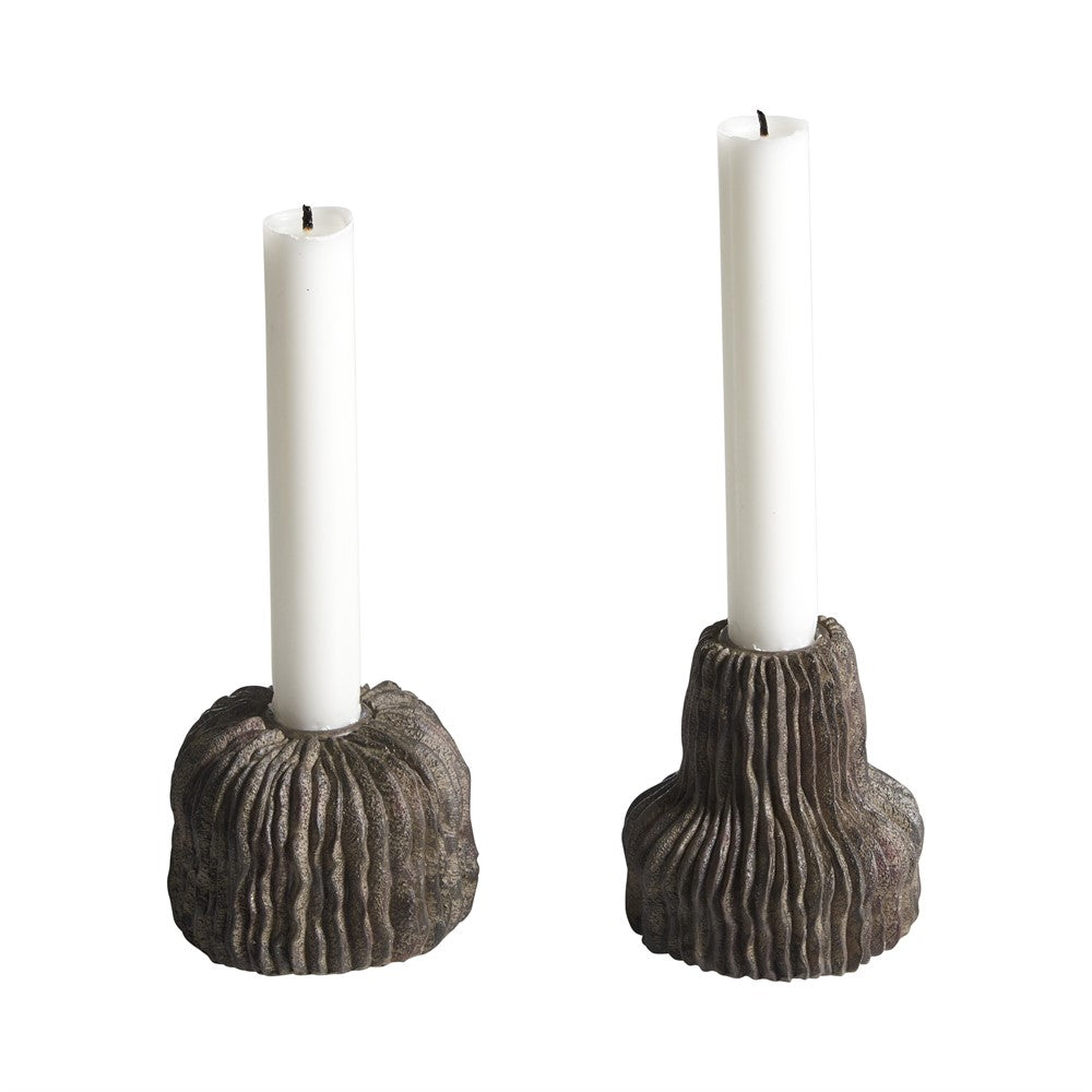 Charmig ljusstake i polyresin med vågig struktur.