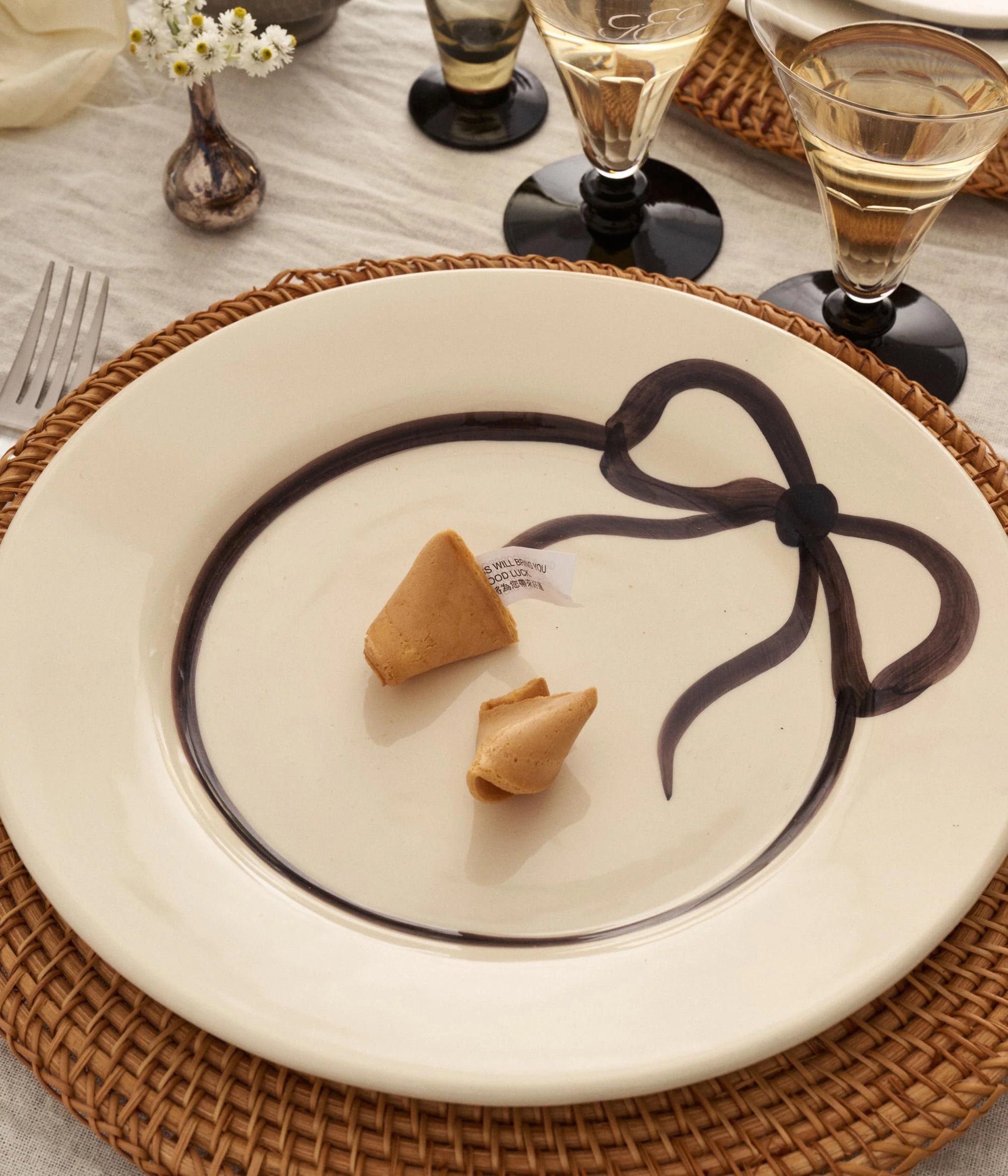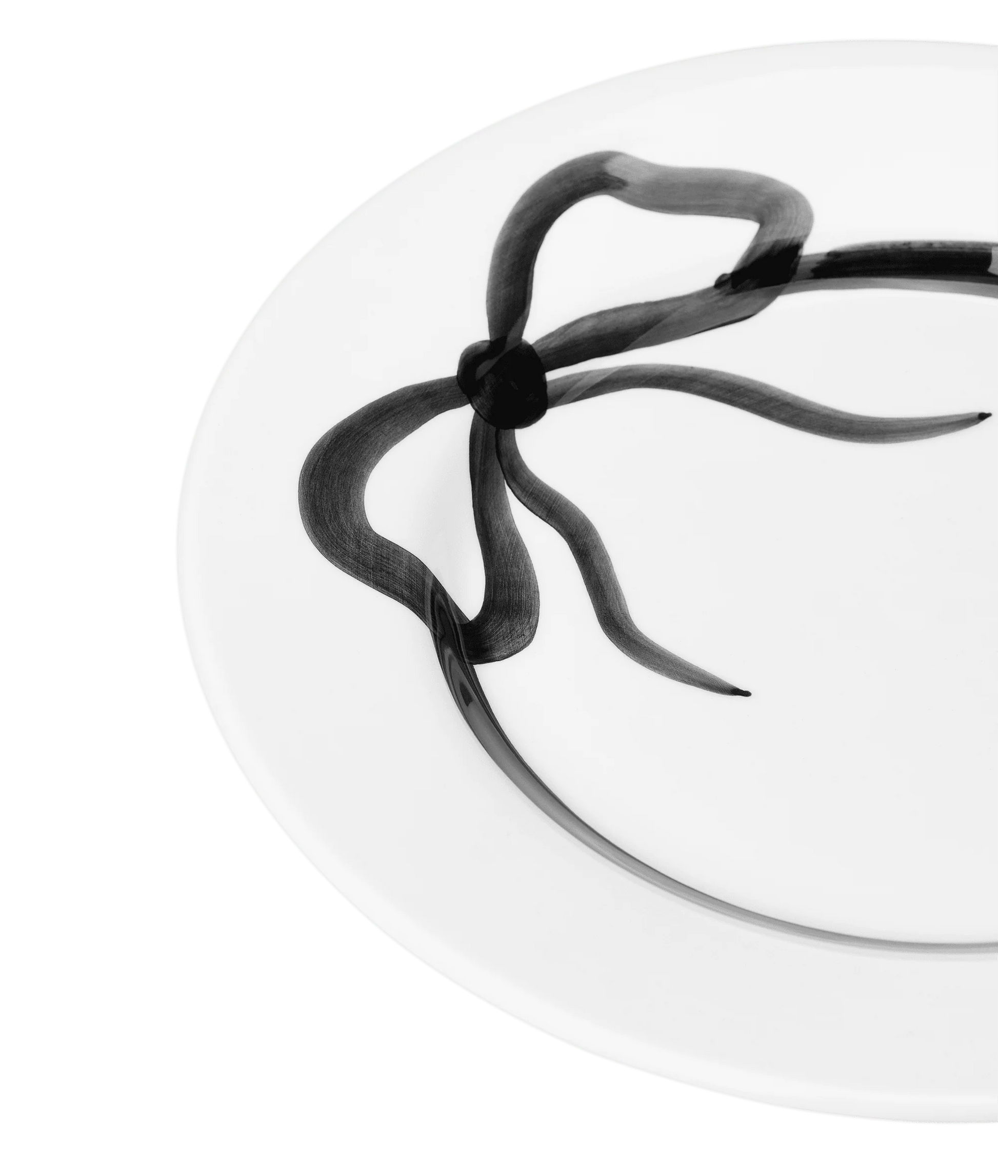En romantisk tallrik från PICK A POPPY. Vill du bjuda dina gäster på en middag där mer än maten blir en upplevelse är denna tidlösa tallrik perfekt. Med sin vita bas och svarta rosett skapar den en unik känsla till bordet.