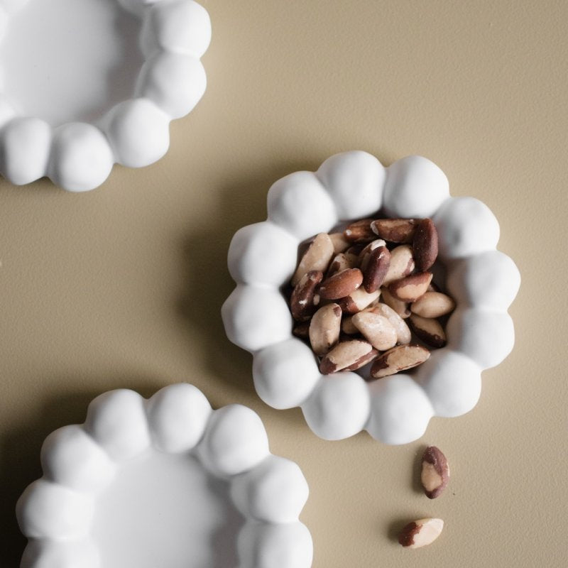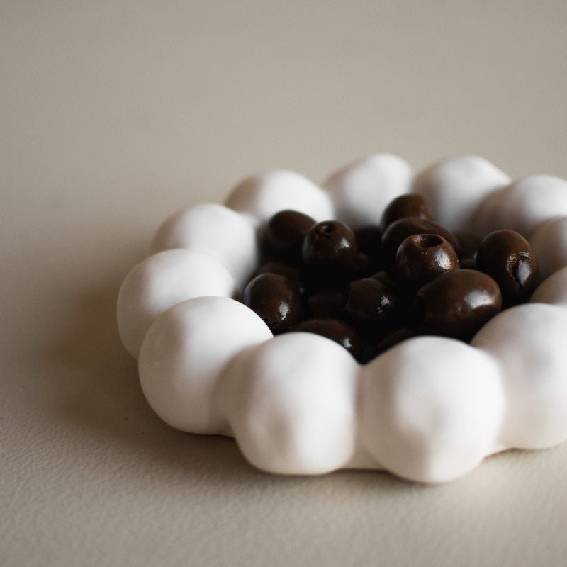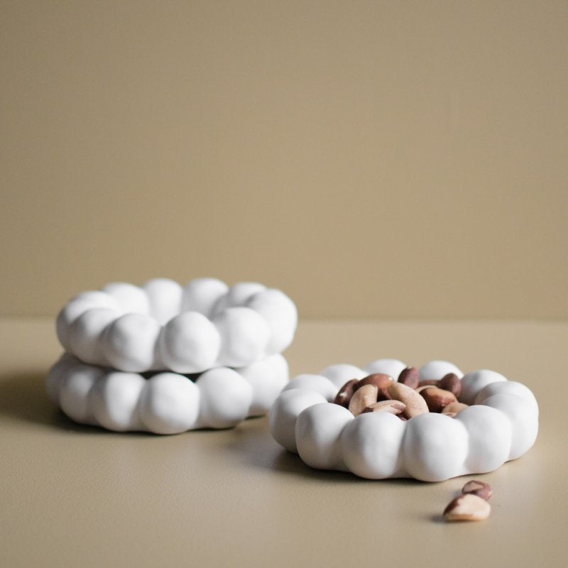 Bright Plate ljusbricka från DBKD med en dekorativ, rundad form perfekt för blockljus och värmeljus.