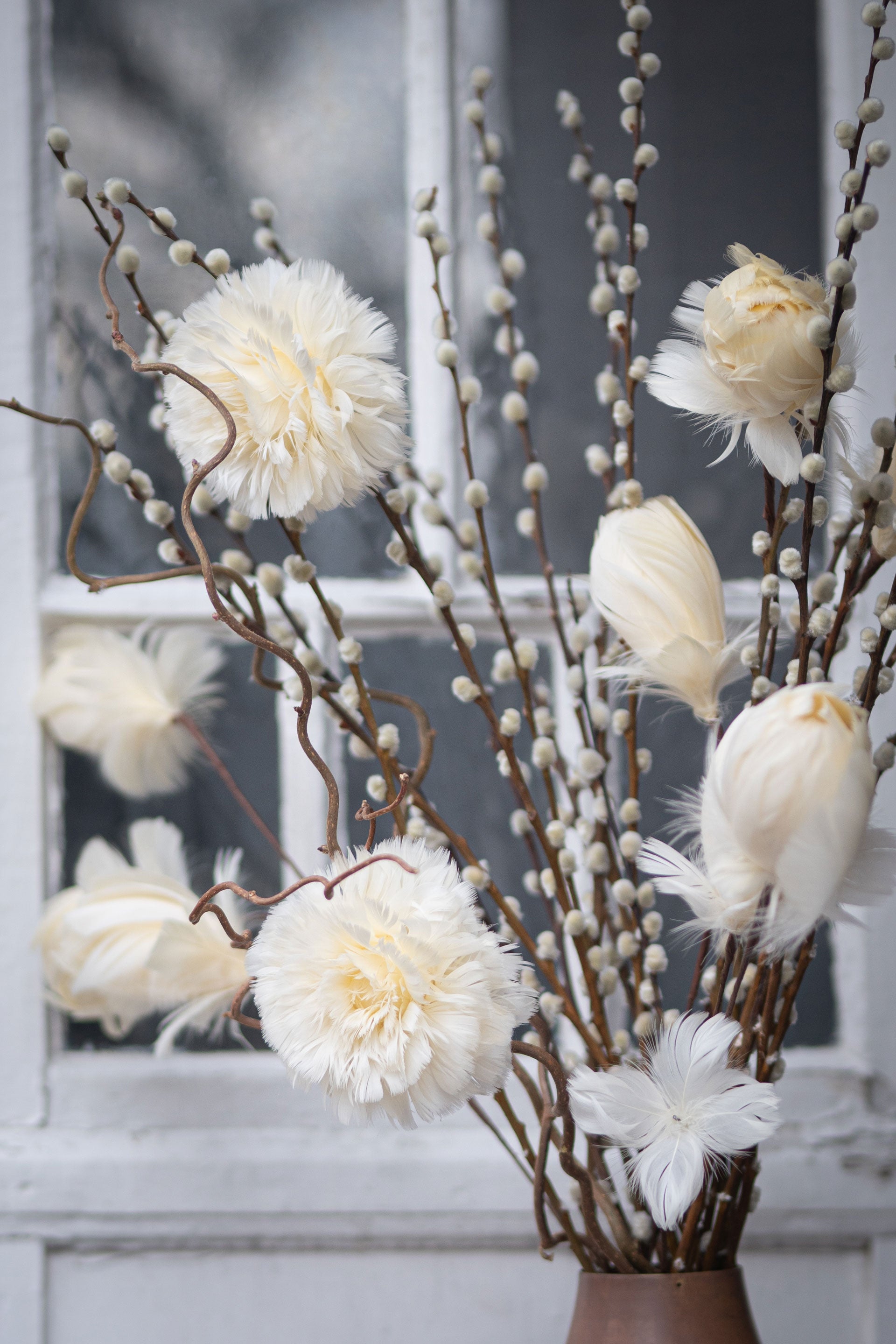 Denna blomma gjord av fjädrar är ett utmärkt sätt att dekorera grenar eller blomsterarrangemang.