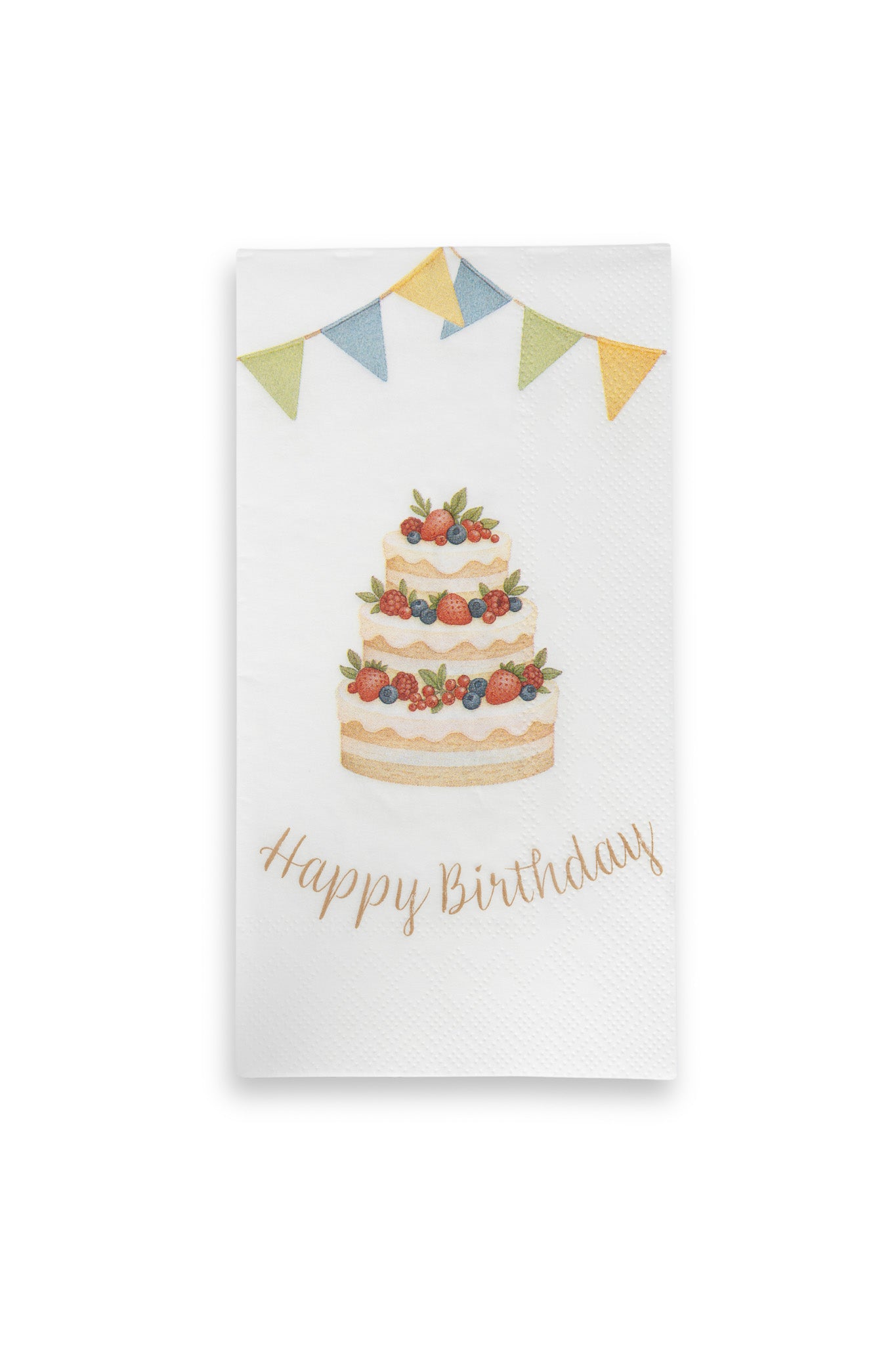 Pappersservett med födelsedagsmotiv. En stilren servett som passar fint till alla födelsedags dukningar eller kalas. En förpackning innehåller 16 servetter.