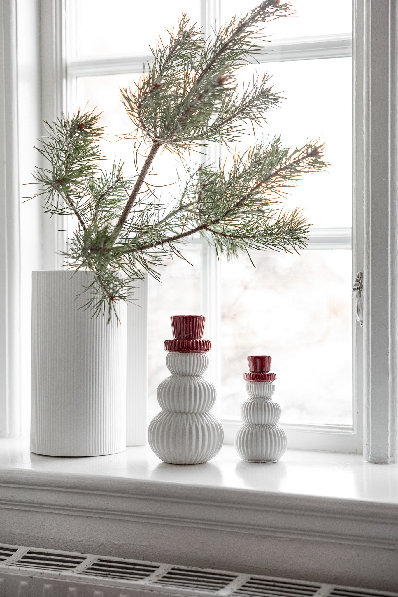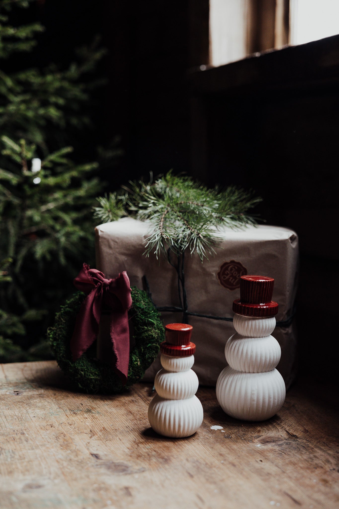 Dekoration i matt och glaserad keramik. Snögubben FRANK har en glaserad detalj på sin hatt. Fin i sin enkelhet men passar också bra tillsammans sin lillebror.