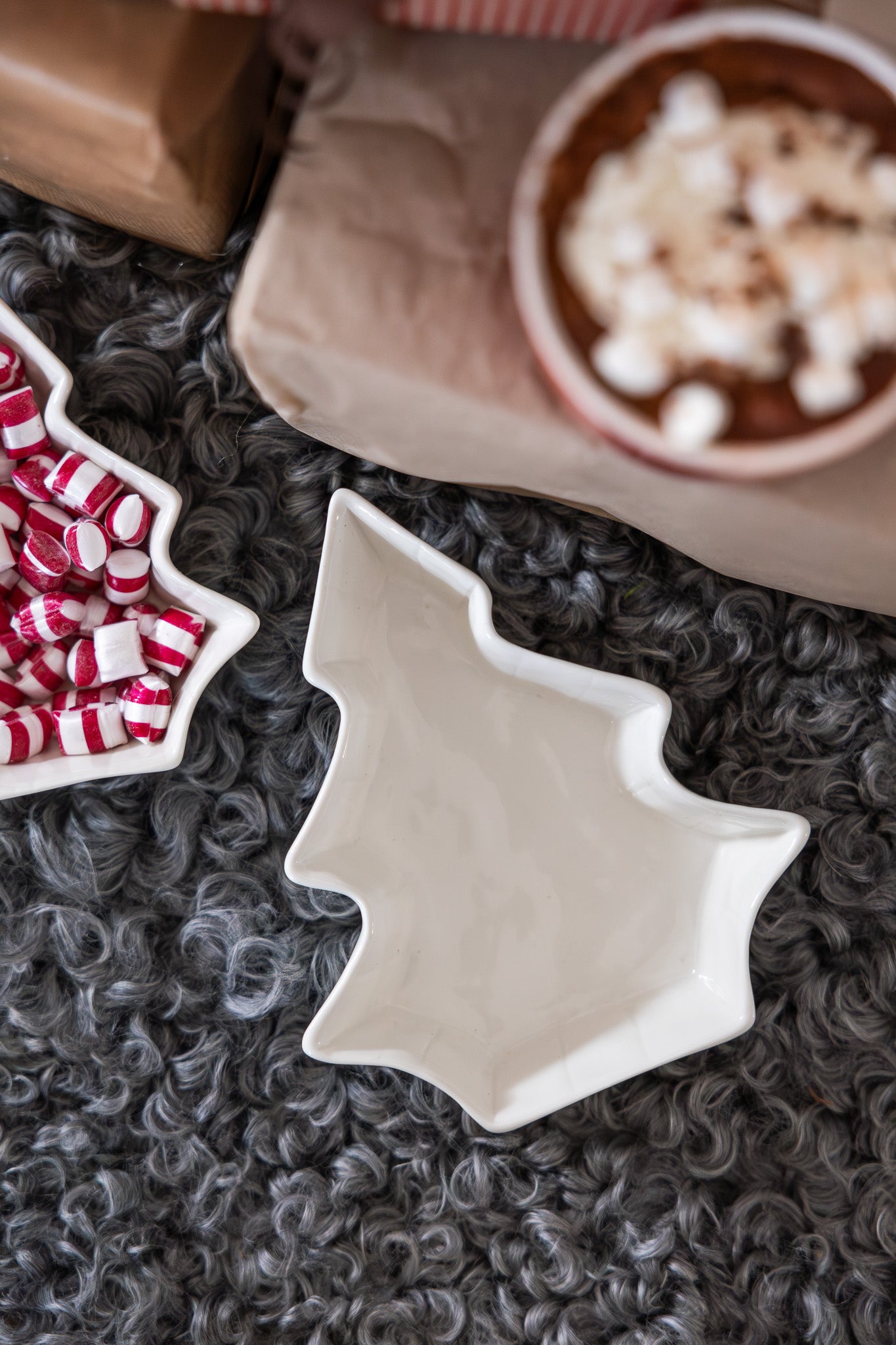 Stilren julgransformad skål i keramik, perfekt för att servera både julgodis och pepparkakor. Den är också vacker i sin enkelhet och en fin detalj att dekorera bordet med.