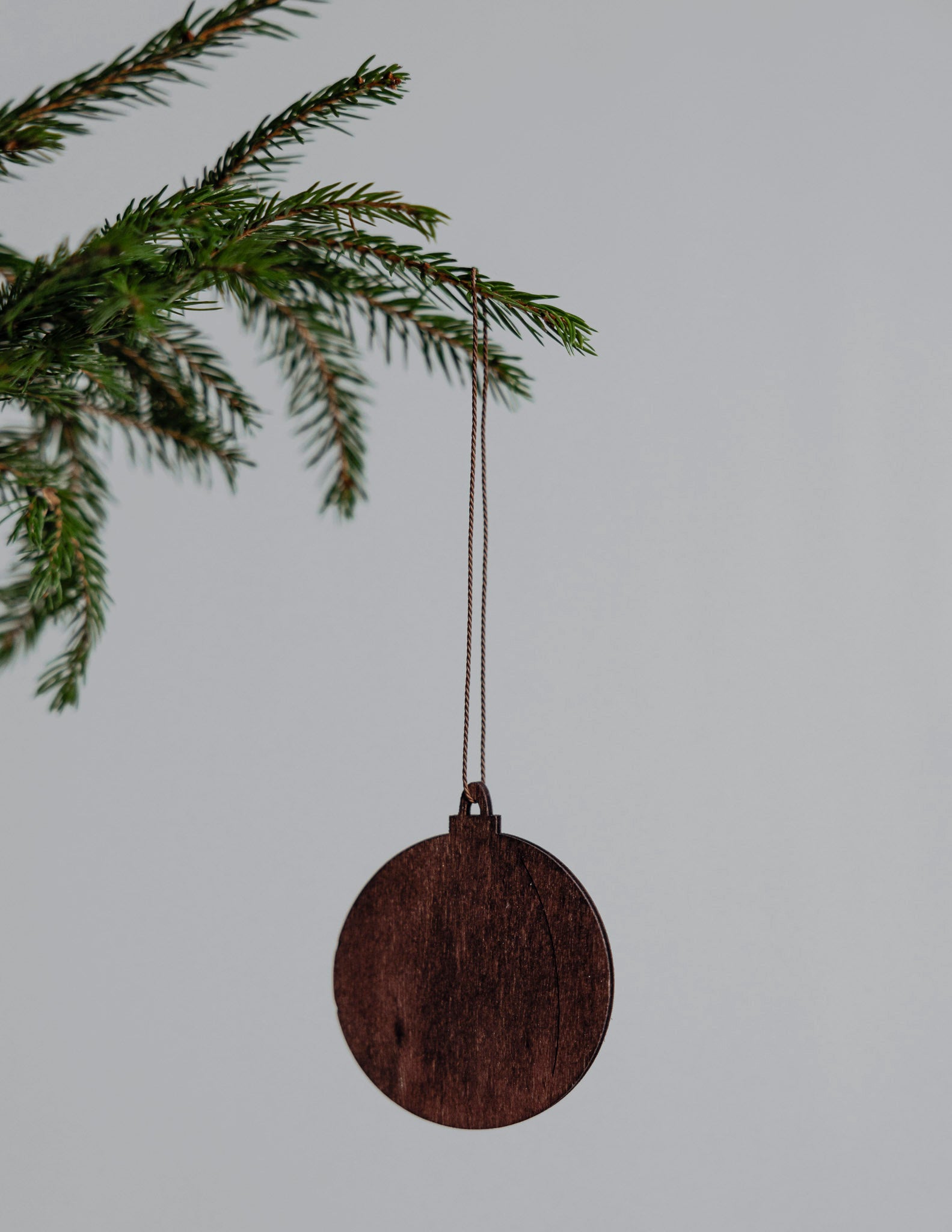 En fin trädekoration med snöre. Häng den på paketet, i granen eller på knopplisten.