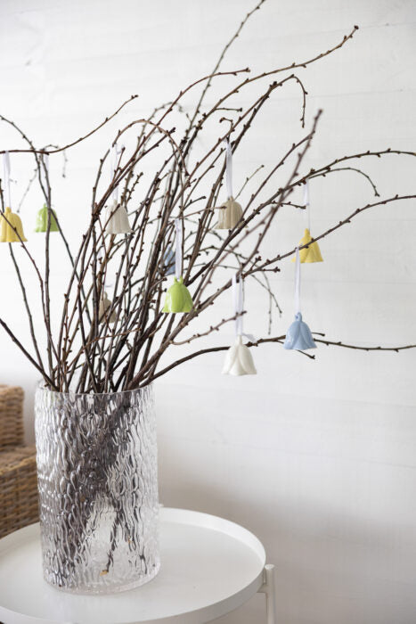 Hängande blomma i glaserad keramik. Passar fint att hänga i påskriset.