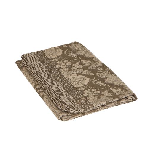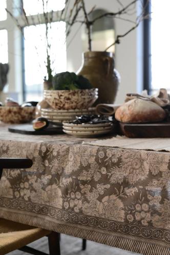Duk i bomull med ett magnifikt mönster och vacker bård längs långsidorna. En duk i ljuva färger som förhöjer rummets atmosfär.