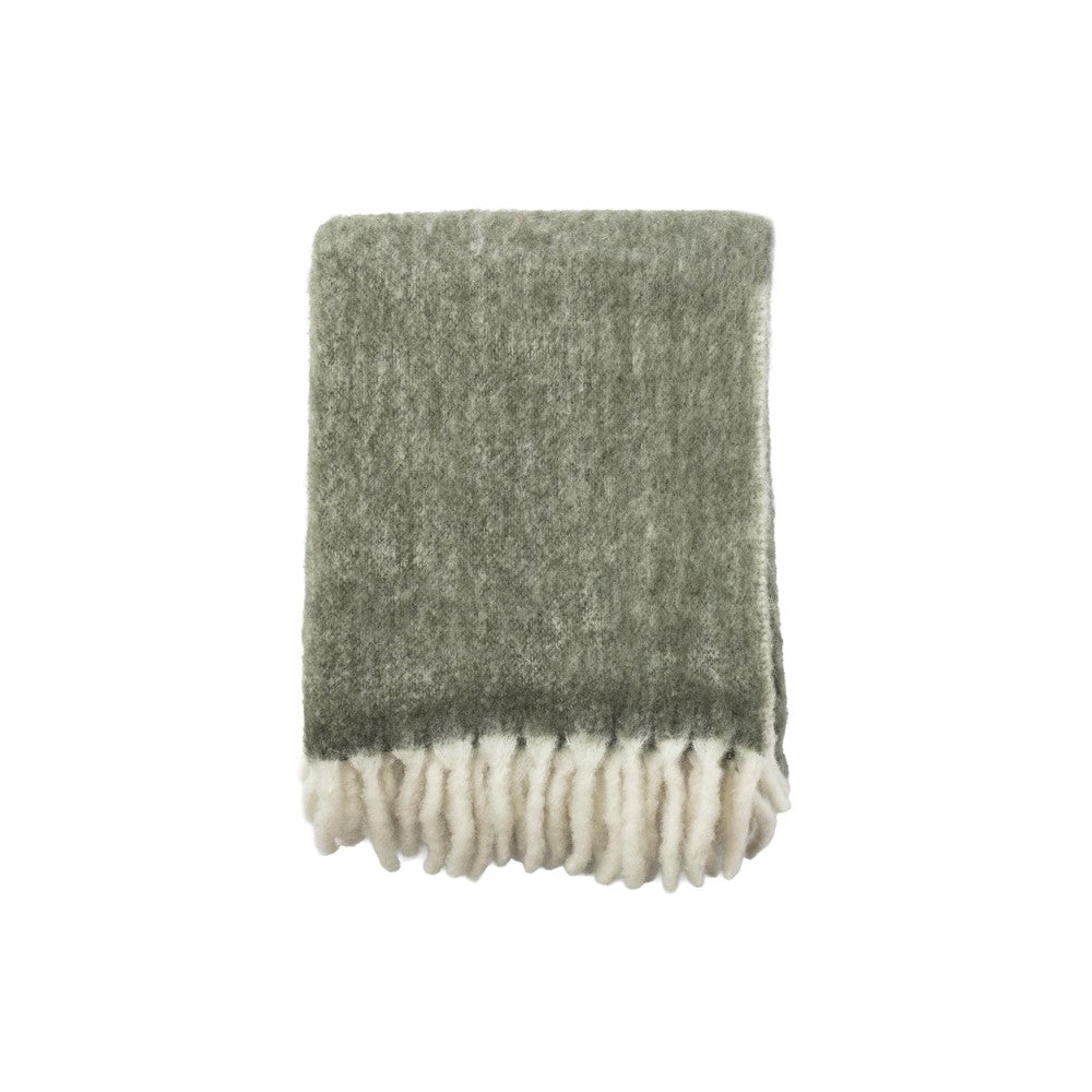 En mjuk tjockare pläd i en borstad ullblandning med dekorativa fransar.