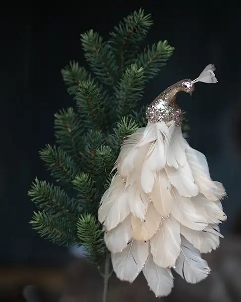 Ge blomsterarrangemanget det lilla extra med en påfågel med clip och glitterdetaljer.