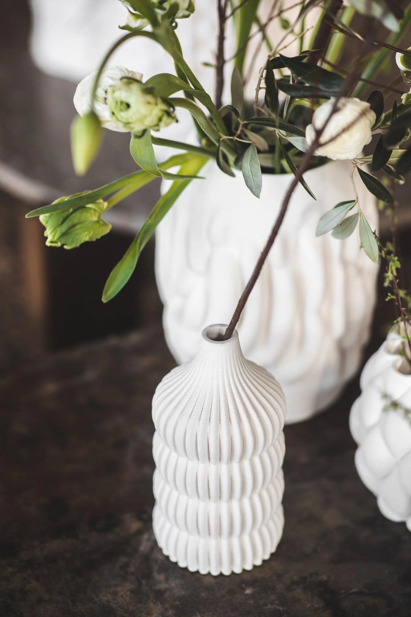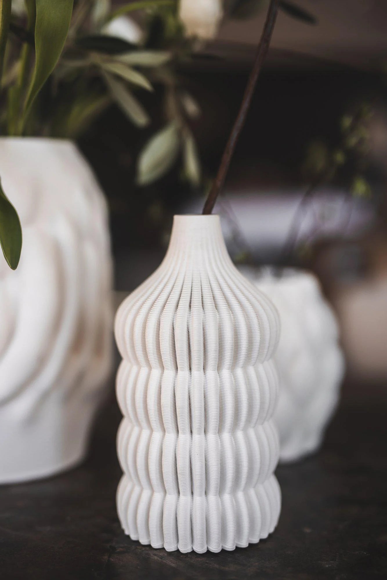 Azalea – en harmonisk fusion av modern teknik och naturinspirerad elegans. Denna vas är 3D printad i en organisk design med inspiration naturen. Den vita keramiska ytan lägger till en touch av renhet och sofistikation till detta unika verk.
