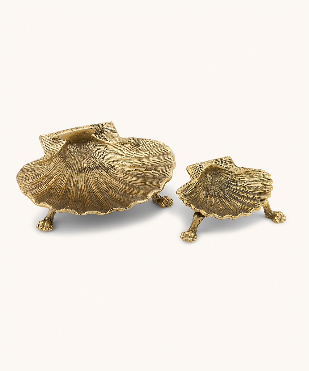 Fängslande skönheten Scarlett Shell-fatet där du kan samla alla dina skatter. Fatet är handgjord med kärlek, och det lilla mässingsfatet blir perfekt för dina dyrbara prydnadssaker, och frammanar de invecklade mönstren hos ett snäckskal och ger en subtil nautisk touch till din inredning. Fatet finns i två storlekar.
