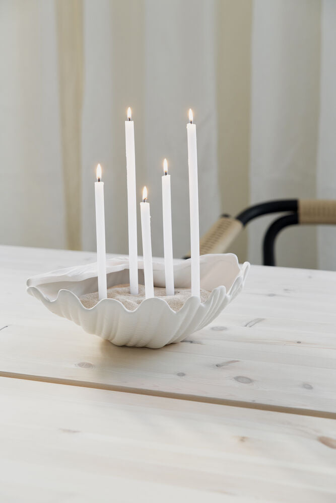 Skålen Shell är en snäckskål från Byon för alla tillfällen. Vackert vit passar den som godisskål lika väl som på nattduksbordet för smycken.