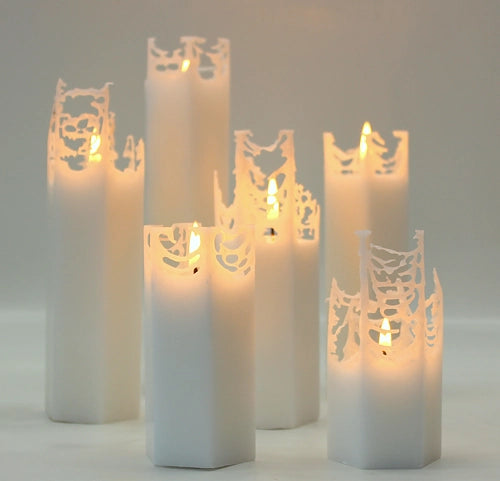 Spindelvävsljus som skapar ett vackert mönster under brinntiden och ger ett stämningsfullt sken.