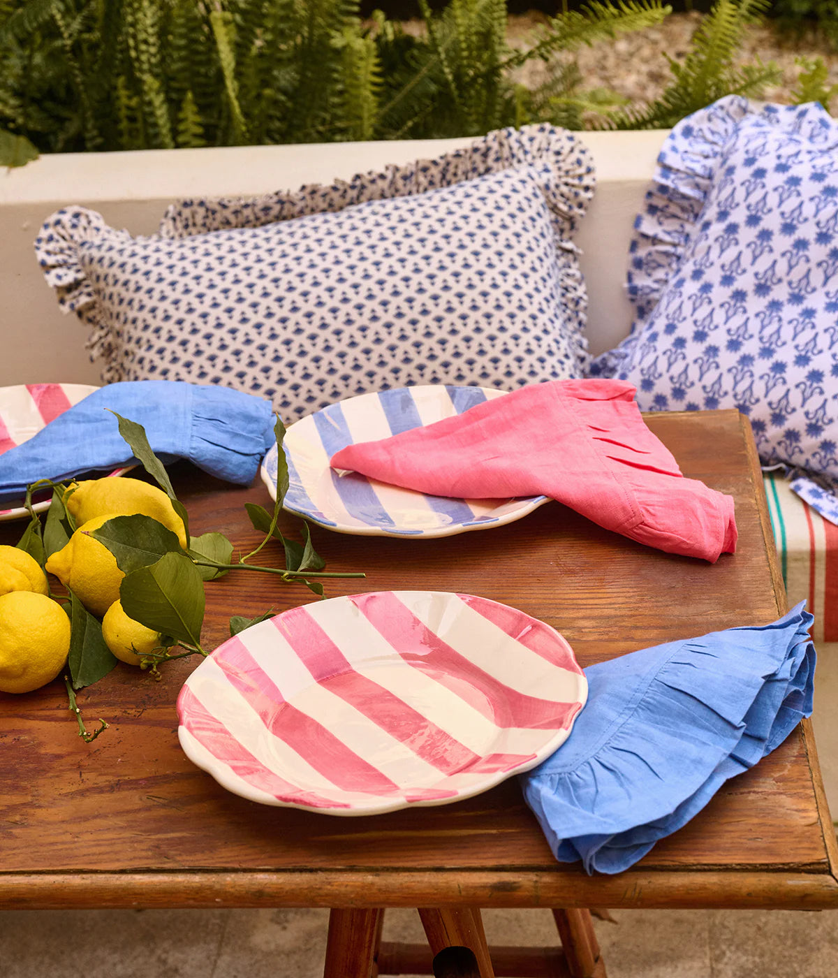 Tallriken Stripe är i lekfulla färger inspirerade av de soldränkta vyerna vid Amalfikusten. Mixa och matcha med assiett från PICK A POPPY för en härlig dukning!