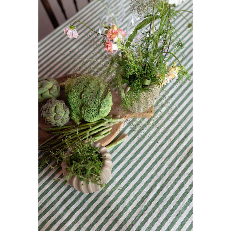 Denna klassiska randiga duk är ett elegant och stilfullt tillägg till din bordsdukning, med sina tidlösa design. Den är tillverkad av återvunnen bomull och återvunnen polyester, vilket gör den till både till ett miljövänligt och hållbart val.
